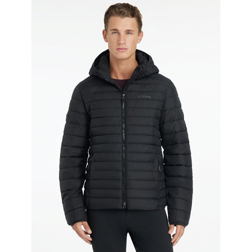 LeMieux Mens Hooded Puffer Jacket Short Coat Wind/Water Resistant Black/Navy