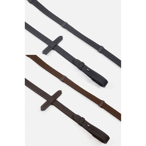 Whitaker Ready To Ride Webbed Continental Reins Pre-Oiled Leather Black/Brown